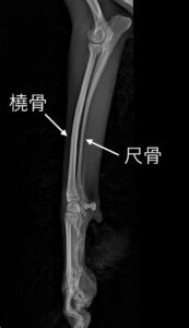 橈尺骨とは、前足の肘から手首までの2本の細い骨(橈骨と尺骨)のことです。