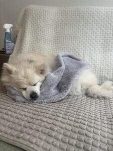我が家の愛犬も布団にくるまり、日中はほとんど寝ています!